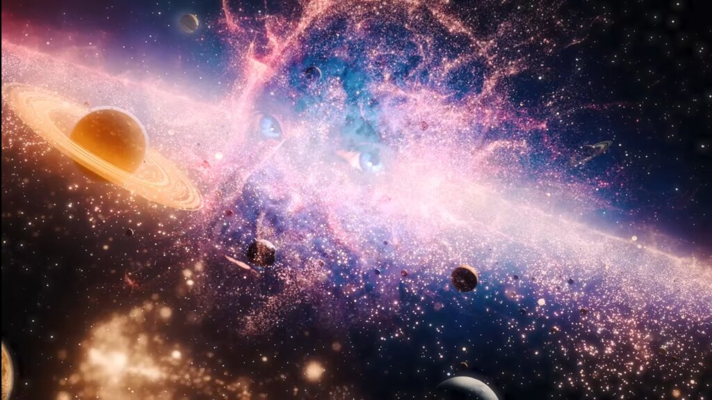 この画像の、MVで最初に描かれている宇宙と一体化している女の子も、裏主題や裏メッセージがわかると映像表現の意味が胸に迫って感動したり、楽曲に散りばめられているものは謎を解く時のヒントでありながら、謎を解いたら答そのもので、それがまた次のヒントになったり、序盤のriddle me thatのメッセージ通り、なぞなぞが凄すぎでした…